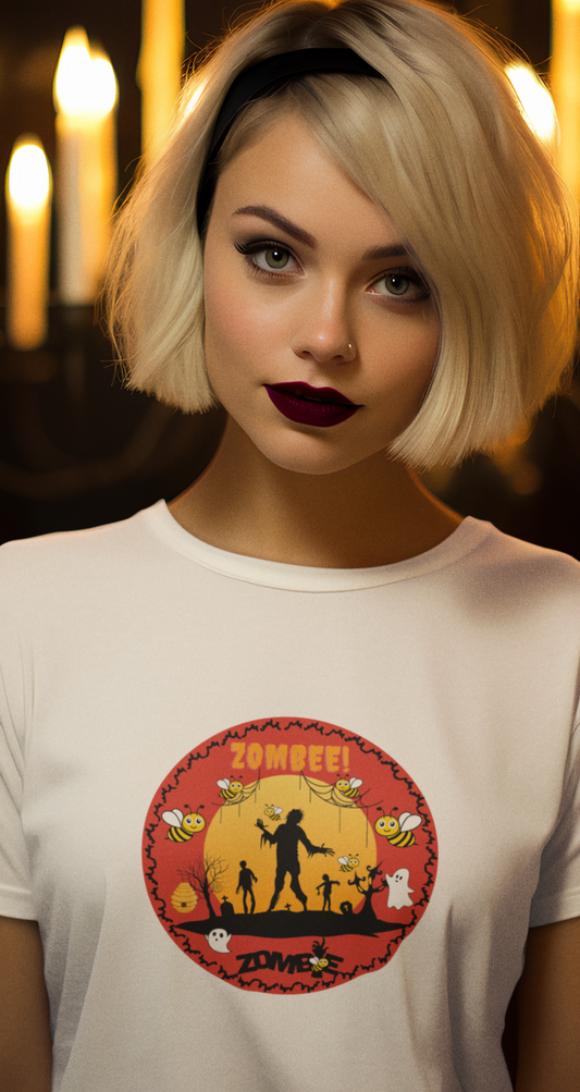 Animals, Bugs, Bee, ZOMBEE, Funny, Holiday, Halloween - Adult, Regular Fit, Soft Cotton, T-shirt