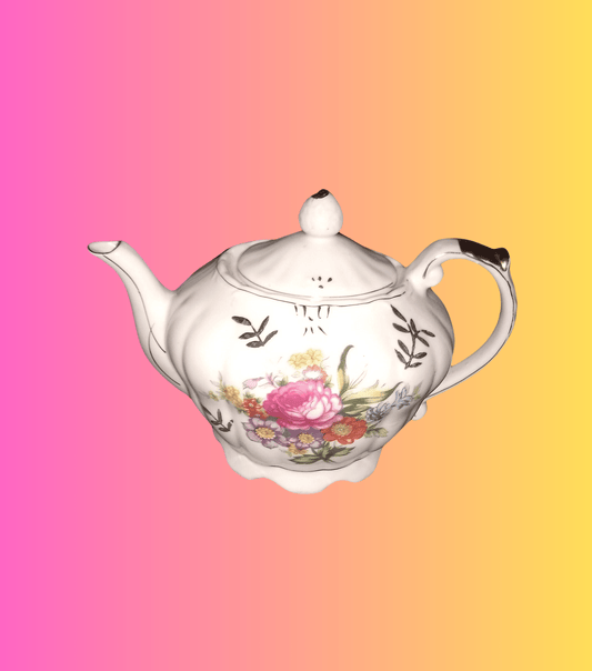 Vintage Musical Tea Pot Wind Up Rose Floral Gold Trim, Made in Japan In 1960's. Tea For Two Song.