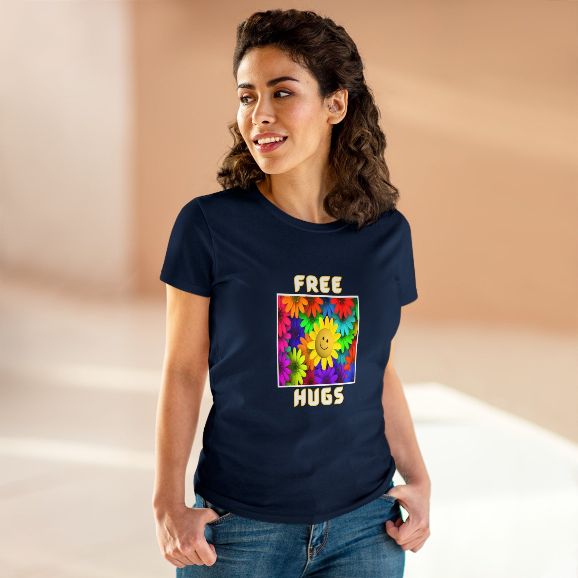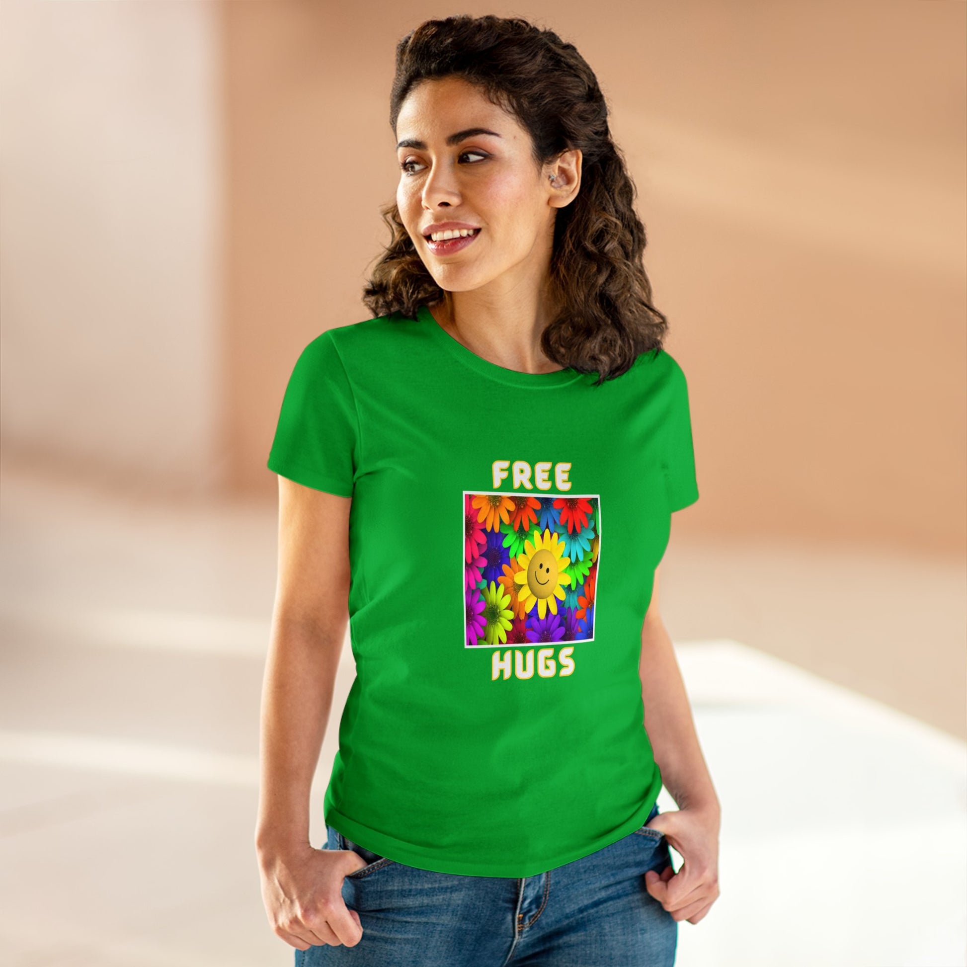Positive, Art, Colorful, Nature, Flowers, Free Hugs- Adult, Semi-fitted, T-shirt
