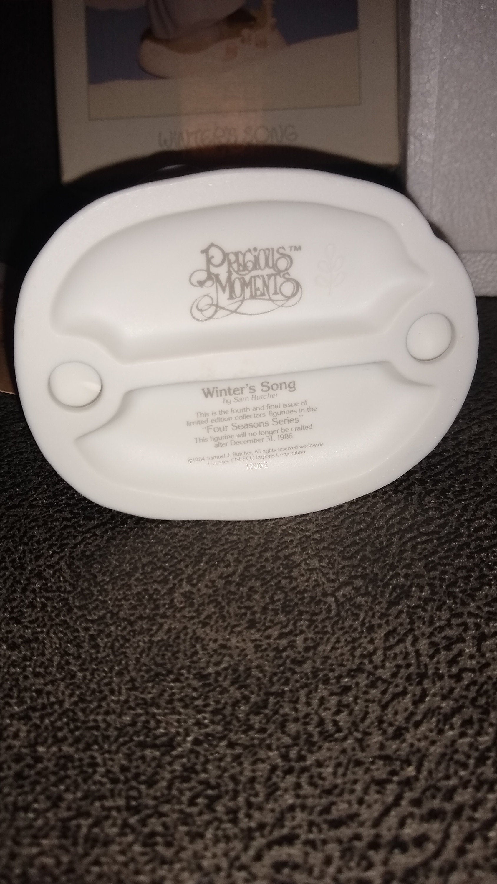 Vintage Precious Moments Figurine, Winter's Song By Enesco 1984.